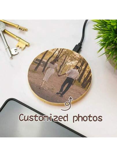 个性化竹制 15W 无线充电器定制照片、结婚礼物周年纪念定制充电器礼物、送给男朋友的个性化礼物 - 最佳男士定制礼物、伴郎礼物、送给爸爸丈夫男朋友的礼物、生日、结婚纪念日、情人节、父亲节的最佳礼物 - 彩色 - 查看 1