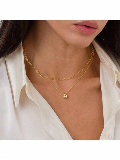個性化氣泡字母項鍊-層疊式金色首字母小型吊墜項鍊,精緻金色首字母扣環項鍊,金色珠寶的女性和少女禮物 - 金色 - 查看 1