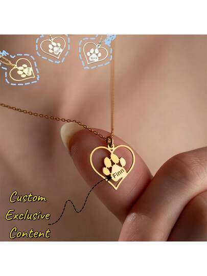 个性化狗爪印项链,定制名字宠物纪念珠宝礼物,可雕刻宠物爱好者礼物,18K 镀金 - 彩色 - 查看 11