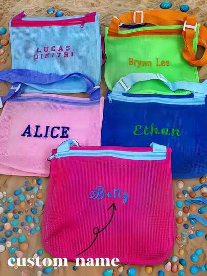 个性化儿童沙滩包、贝壳包、幼儿沙滩手提包、夏季泳池包、儿童旅行包、沙滩桶包 - 彩色 - 查看 10