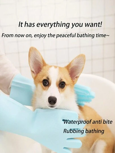 宠物洗澡用品 - 宠物洗澡按摩去毛手套、洗澡刷、狗狗洗澡刷、宠物按摩刷、高品质硅胶手套刷(适用于:宠物猫、宠物狗等。宠物洗澡按摩去毛) - 彩色 - 查看 14