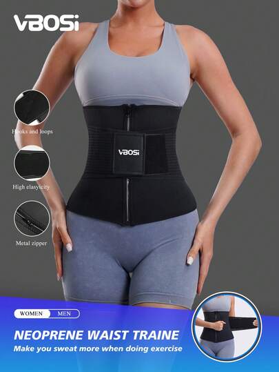 VBOSI 1 件氯丁橡胶拉链腰部支撑带 - 可调节压缩腹带,适用于男女健身配件 - 黑色 - 查看 1