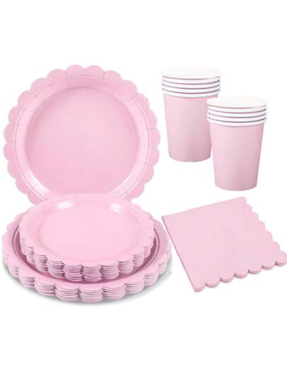 粉色纸盘和餐巾,浅粉色派对用品套装包括蓝色扇形盘子纸餐巾,适用于生日、婚礼、新娘送礼会 - 彩色 - 查看 10