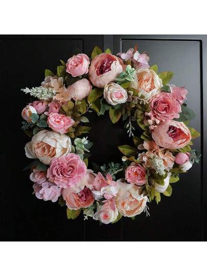 粉色牡丹花环装饰适用于卧室、客厅、门口 - 粉色 - 查看 1