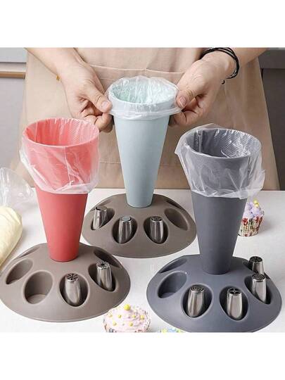 裱花袋支架,裱花袋支架,蛋糕装饰糕点工具,裱花袋支架,带 8 个喷嘴槽的裱花袋支架,蛋糕装饰套件的塑料糕点袋支架,烘焙配件 - 灰色 - 查看 19