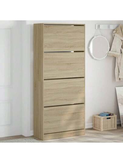 Shoe Storage Cabinet With 4 Openings Sonoma Oak Finish 8875 Cm Stylish Organizer For Entryway Or Bedroom - 棕色 - 查看 1