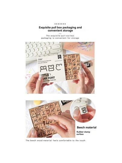 一盒36枚 幸运印章 木质印章 手册印章 跨境字母数字儿童印章 DIY手册印章 学校用品,返校 - 彩色 - 查看 11