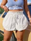 SHEIN EZwear 大码夏季休闲纸袋腰牛仔短裤