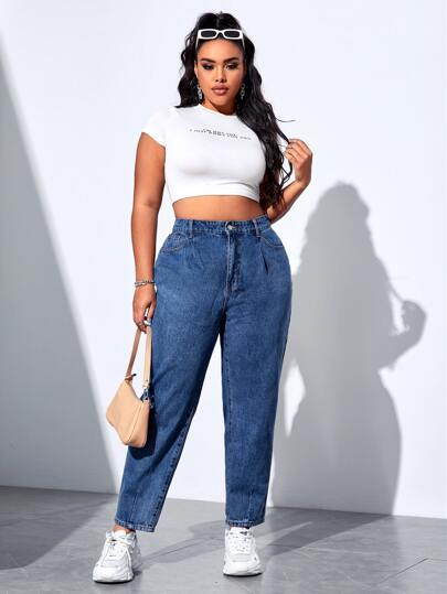 大碼高腰牛仔褲 - 中等水洗藍 - 查看 1