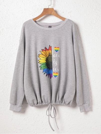 大碼LGBT標語圖案抽繩運動衫 - 淺灰色 - 查看 1