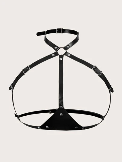 大碼環鏈PU皮革束帶文胸 - 黑色 - 查看 1