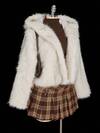 SHEIN ICON 加大码白色仿毛兔耳连帽蓬松大衣,甜美 Y2K 风格