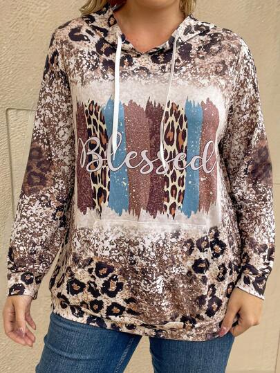 EMERY ROSE 加大码字母图案拼接印花袋鼠口袋抽绳卫衣 - 彩色 - 查看 1