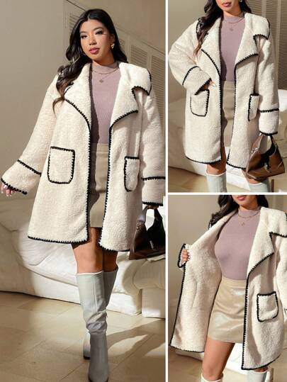 Calvaya 大码长款保暖内衬连帽工装夹克,厚实保暖 - 卡其色 - 查看 8