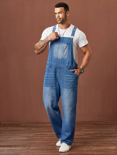 Manfinity Hypemode 大码男式浅蓝色水洗牛仔宽松工装裤 - 淺色水洗藍 - 查看 1