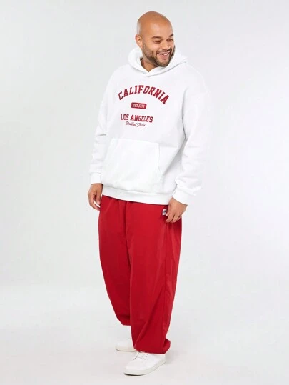 Manfinity VCAY 大码男士字母印花长袖连帽卫衣和抽绳九分裤两件套,秋季,秋冬 - 白色 - 查看 1