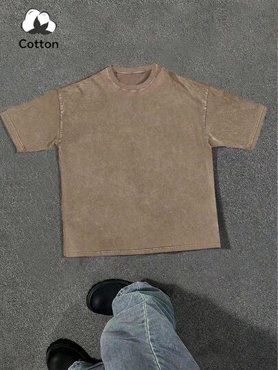 加大码男士休闲水洗圆领短袖T恤,夏季