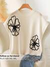 Flirla 大码纯色圆领短袖简约针织上衣,休闲日常穿着
