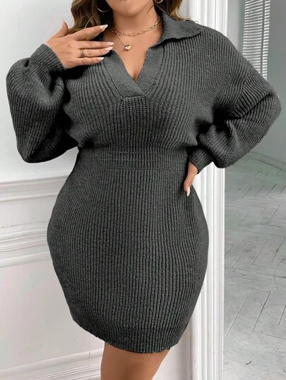 大尺碼純色高領毛衣連衣裙