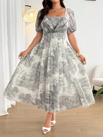 SHEIN Clasi 大码 V 领收腰 A 字形度假连衣裙 - 彩色 - 查看 1