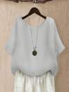 Linhara 女士大码休闲/日常/户外/简约/度假绿色纹理圆领套头衫,春夏