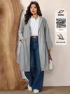Zelara 加大码时尚纯绿色连帽口袋设计中长款夹克秋季带口袋女式风衣外套冬装