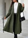 Linhara 大码休闲连帽长款夹克,带大口袋
