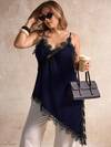 Elegantrix 大码女式都市休闲蕾丝不对称下摆 V 领拼接纯色吊带背心