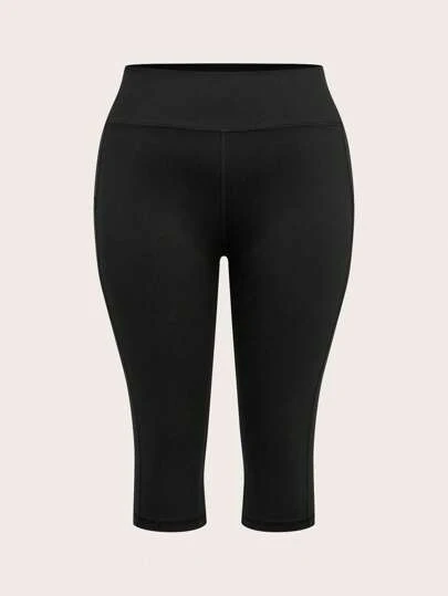 SHEIN BASICS 大码女式休闲运动针织高腰七分紧身裤 - 黑色 - 查看 1