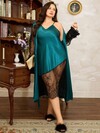SilkySpell 加大码奢华 3D 荷叶边拼接透明蕾丝长袍/睡衣,度假风