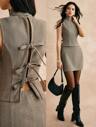 Poéselle 女款杏色优雅通勤前金属扣背心和阔腿褶皱裤两件套,商务休闲女装,优雅西装,粗花呢西装,褶皱裤套装,适合职场外出装扮