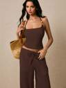 Poéselle 新款女士牛仔工装裤和连体裤裹身式侧腰系带无袖连体裤秋季服装深蓝色法式优雅约会服装