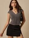 Poéselle 女式金属纽扣前下摆开衩背心和长牛仔裤两件套 - 优雅牛仔套装,宽腿宽松牛仔裤,女式高腰牛仔裤,FW25