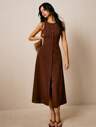 Poéselle 白色连衣裙,亚麻连衣裙,单排扣,前开衩,女士纯色单排扣开衩无袖长裙,面料舒适透气,适合日常外出、通勤、海滩度假、居家、约会等场合女士连衣裙优雅礼服女士连衣裙生日
