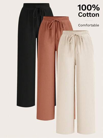 Poéselle 夏季系带前斜口袋裤宽松休闲棉麻多件套裤子休闲舒适透气适合日常通勤度假穿着 - 藕粉色 - 查看 11