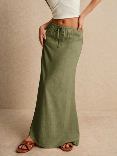 Poéselle 女士半身裙,及地长裙,腰部系带,可爱半身裙,低腰半身裙 - 橄欖綠 - 查看 1