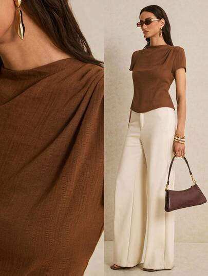 Poéselle 女士纯色褶皱肩短袖休闲T恤