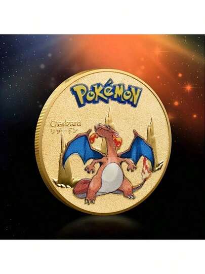 pokemon 宝可梦金属硬币 皮卡丘硬币 喷火龙 超梦 皮卡丘 金属宝可梦卡牌 圆形游戏收藏卡 动漫玩具 - 彩色 - 查看 1