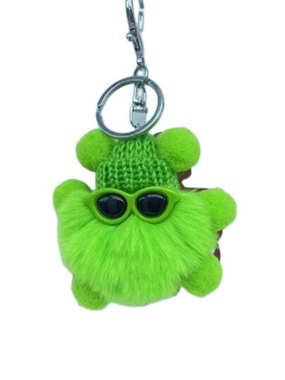 小絨球包飾太陽眼鏡&帽子裝飾鑰匙鏈 - 綠色 - 查看 1