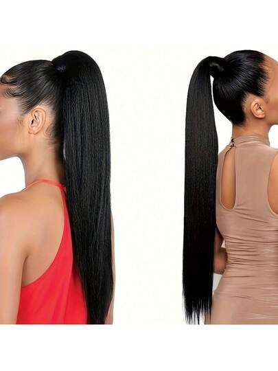 马尾辫真人发片直绕马尾辫1片100%雷米真人发16英寸-28英寸直100%真人发片女士马尾辫接发 - Natural Black - 查看 4