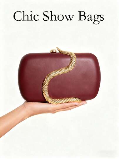 U型镶钻手工宴会手拿包,流行晚宴包,女士礼服新娘包 - 酒紅色 - 查看 1