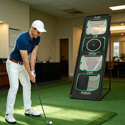 Portable Foldable Golf Firing Net, Training Net For Indoor/Outdoor Swing Practice, Golf Hitting Net With Target Area, Excellent Golf Training Tool, Ideal Gift For Golf Enthusiasts And Beginners