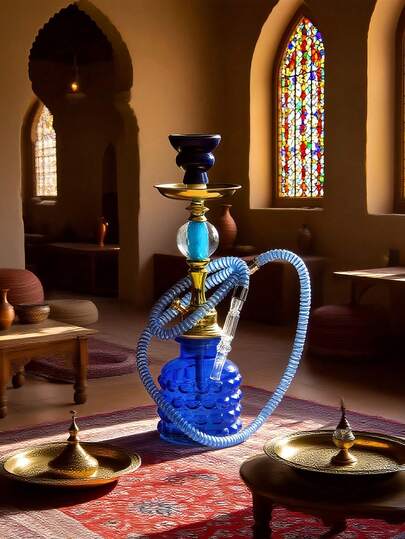 便携式水烟套装(包括碗、软管、炭盘、夹子),优质单管水烟,高端玻璃水烟,带亚克力杆和金属软管,无需电力,返校、情人节、父亲节礼物,适用于酒吧、俱乐部、KTV、家庭和餐厅,易于携带 - 均碼 - 查看 1