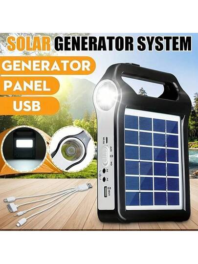 Portable Solar Panel Power Storage Generator Kit - Rechargeable USB Charger With Lamp Lighting For Home Solar Energy System