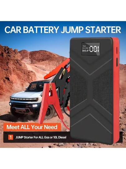 便携式超薄应急启动器 - 3 种模式 LED 灯、手电筒、频闪灯、数字显示、快速充电、紧凑设计(适用于电池没电紧急情况)、锂聚合物电池、绝缘材料、自动启动/停止、多功能汽车电池充电助推器 - 彩色 - 查看 1