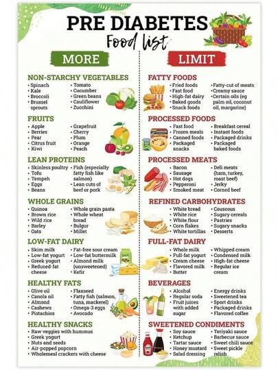 Pre Diabetic Food List Poster, Pre Diabetes Low Sugar, Food Meal Plan, Prediabetes Foods Avoid And Grocery List, Type 2 Diabetes Diet Food List Wall Art Metal Tin Sign 8x12 Inch