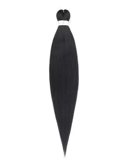 預拉伸編織頭髮長編織頭髮燒紋理柔軟鉤針辮子,熱水定型扭曲合成編織接發 - 黑色 - 查看 1