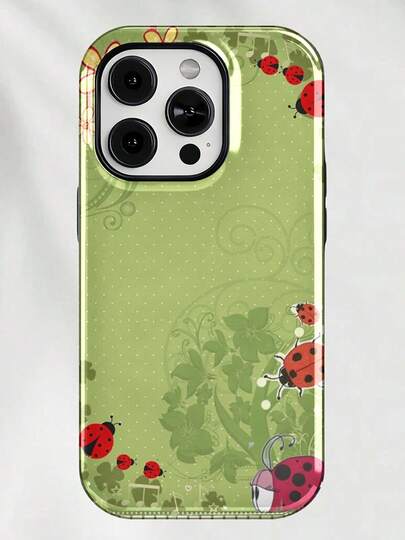 Premium 13 Case High-Quality Ladybugs Flowers Dots Green Floral Pattern That Won't Peel Off Hybrid Shock-Resistant Protective Case High-Quality Apple Phone Case
