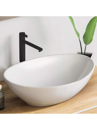 Premium Oval Washbasin With Lotus Effect, Counter-Top Wash Basin For The Bathroom And Guest Toilet, Wash Basin Without Tap Hole And Without Overflow, Pure White Counter-Top Basin