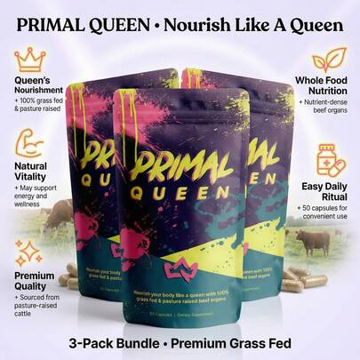 Primal Quenn – 3-Pack Bundle | Grass-Fed Beef Organ Supplements For Women | Supports Energy, Hormonal Balance & Healthy Skin | Natural Source Of Iron & B12 | 2 Capsules Daily | Buy 3 Save Big – Limited Time